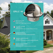 100mm Stainless Steel Air Vent Grille with Built-In Mosquito Net, Weather Resistant, Perfect for Extractor Hoods, Ventilation and Exhaust Ducts
