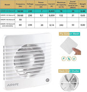 100 mm VMC Air Extractor Fan with Anti-Return Valve + Integrated Mosquito Net, 7 W, dB(A) 26, for Bathrooms, Kitchen, Office, Toilet, Silent, 5 Year Warranty AIROPE